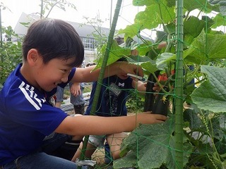 順調に、初収穫を迎えるきぼう畑のお野菜さん。先週のキュウリと