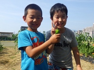 ミニトマトに続き、今週はピーマンも取れだしました!朝、畑に行くのがみんな楽しみです!