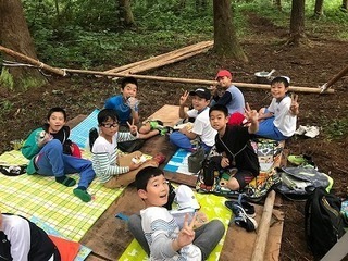 食べる場所は、作っている小屋。みんな仲良く食べています!