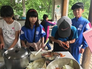 火をおこす、具材を切るなど役割ごとに仕事を進めます。