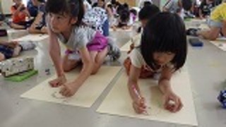 第1回目は、基本的な顔の描き方を教わりました。描く順序やパーツの位置・大きさなどうまく描くポイントを教えていただきながら描くと、みんなとってもリアルな「人の顔」が描けました。第2回目は、顔と身体のバランス・首から手足などのつながりなどを教わり、全身を描きました。大きな画用紙を縦に使い、全身を描き上げると「今までで一番うまく描けた!!」という子供ばかりでした。
