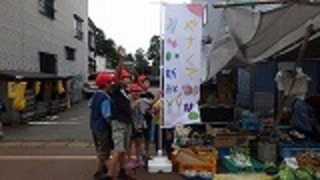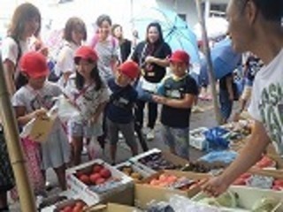 早速、12日の二七の市に「朝市のぼり旗」を持参し、朝市のPR大作戦を決行しました!! PR活動は、子供たちが、以前からやりたかった活動です。はじめは、遠くでささやくような声のチームもありましたが…。そこはたいようっ子です!!徐々に慣れて、大きな声で宣伝することができました。お客さんからは「頑張っているね!」「のぼり、上手に作ったね!」と褒めていただき、お店の人からは「おかげで売り上げ上がったよ!」と、感謝の言葉も頂戴しました。まだまだPR活動は続けていく予定です。