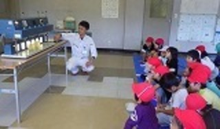 社会科で学習して知識をもっている子供たちも、実際の様子を目の当たりにすると、「すごい!」「ホントにキレイになっていく!」などの驚きの声があがりました。その後、実際に「ろ過池」を見学し、質問に答えて頂きました。質問の中には、「今年の猛暑でした。ダムの水は大丈夫だったのですか?」というものがありました。職員の方の答えは「全然足りませんでした。上越市には、地下水浄水場が2つあり、その水をたくさん使い、水不足を防ぎました。」というものでした。知らずに使っていた水は、浄水場で作られ、私たちの豊かな生活も守られていたことを知りました。「感謝しなくちゃいけないね」と感謝の気持ちを感じていました。