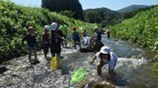 社会科と探究の二つの学習を兼ね、浄水場と青田川全域の体験と見学に行ってきました。