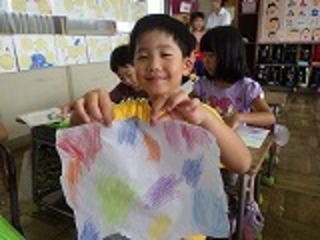 子供たちが育ててきたアサガオさんの花や葉っぱを使って、こすり出しの活動を行いました。アサガオさんの花を半紙とクリアケースで挟んでこすると、花の色合いが美しく半紙に出てきます。また、アサガオさんの葉っぱの上に半紙を置いて、ポンキーで上からこすると葉脈などもきれいに映し出されます。