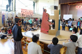 当日は、迫力ある太鼓演奏から始まるオープニングがあり、その後、子供たちが楽しみにしていた「なかよし班対抗紙相撲大会」が始まりました。