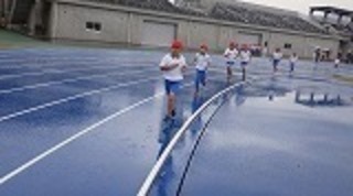 スタート直後の笑顔が、徐々に苦しく辛い表情に変わっていく子供たち…。でも、誰一人リタイアすることなく、ゴールまで走り切ることができました。これまでの練習で培った持久力と、何より雨の中、競技場に応援においでくださったご家族の皆さんの温かい声援のおかげです。子供たち一人一人、本当に頑張りました!