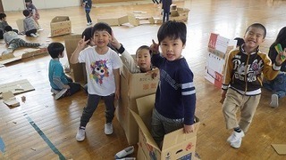これまでに「ダンボールのおうち」や「ダンボールの車」、「ダンボールの自動販売機」、「ダンボールのお店」、「ダンボールの衣装」など様々なものをつくっています。これからは、遊び場や遊びに使うものをつくる活動と共に、ダンボール製の家具や楽器などをつくる活動も行っていきます。