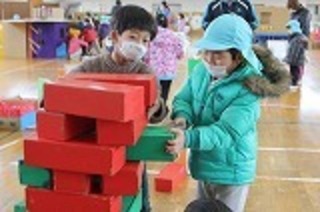 先日、高田幼稚園の園児さんを「ダンボールランド」に招待する活動を行いました。子供たちが楽しみにしていた活動で、朝からワクワクしている様子が伝わってきました。