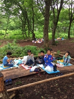 しかし,子供たちは森小屋作りの材料であるコンパネや丸太を頑張って運びました。