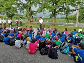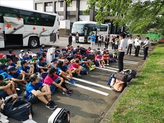 高田は晴天に恵まれ,さわやかな朝となりました。出発式をして,これから最初の目的地,行田市へ向かいます。
