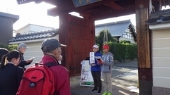 さらに改善を重ねて3回目ガイドツアーに臨みました。この日は、寺町に住んでいる方や上越高校の生徒、上越教育大学の留学生など合計約20人のお客さんがガイドツアーに参加してくださいました。この中には、2回目ツアーに来た方から「よかったから参加してみて」と紹介され来られたという方もいらっしゃいました。