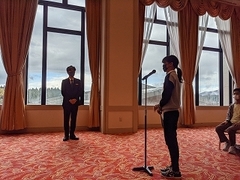 お世話になったホテルを出発する前に、みんなで記念撮影。