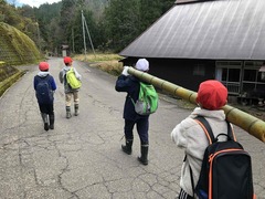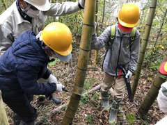 中ノ俣の竹林に竹をとりに行きました。地域の方に教えてもらいながら、竹切りや枝落としをします。