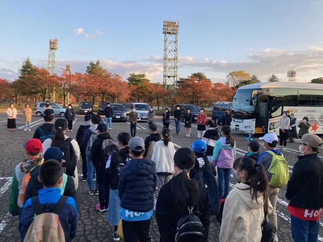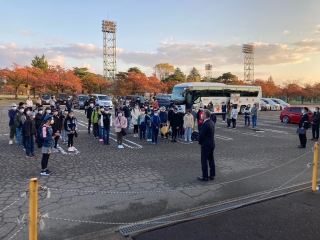6年生の子供たちは、スポーツセンター駐車場に集合しました。