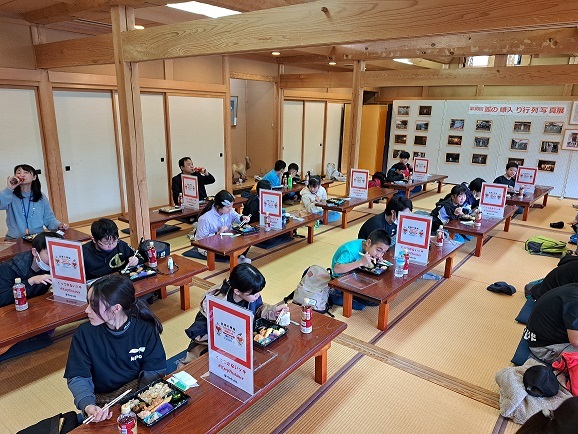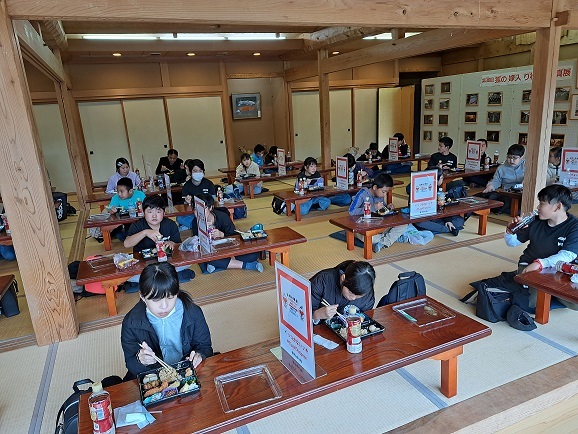 地元のものたっぷりの美味しいお弁当をいただいています。