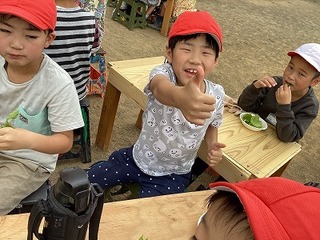 そして,採れたての味は…「すっごくおいしい!!」「なんかあまい」「シャキシャキする!」と目を輝かせながら嬉しそうに食べる姿が見られました。