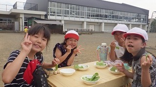 当日は,はつか大根を一人一人が自分で収穫し,サニーレタスと一緒に採れたてを味わいました。子供たちはどれを収穫するのか真剣に野菜を選び,とても嬉しそうに野菜を手にしていました。