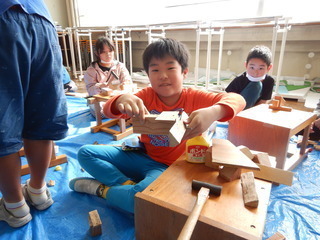 「高田城址公園に集まるといいなこんなそらモン(≠ポケモン)」をテーマに,初めてのくぎうちに挑戦し,自分だけのオリジナルそらモンを木工作しました。「このそらモンの性格はね…」「このそらモンが発揮できるワザはね…」などを想像しながら,その特徴が表れるように作りました。