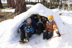 友達と協力してかまくらを作ったり,雪合戦をしたり,そりすべりをしたり…。今年は例年よりも雪が少ないですが,高田公園で雪遊びをする中で,「やっぱり高田の冬も楽しい!」「高田に生まれてよかった!」という思いをもったにじっ子でした。