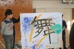 6年生から,5年生にマーチングバンドを引き継ぐ時期がやってきました。6年生は,パートごとにもっている思いを書道アートで表現し,5年生に伝えました。