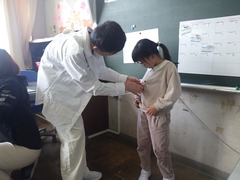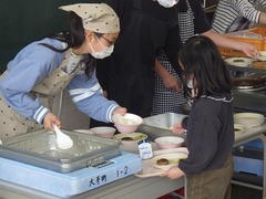 給食のサポートもがんばっています。1年生の食べる量を考えながら,丁寧に配膳しています。