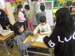 「絵を描くのが上手だね」「すごいね!」などプラスの言葉掛けをする姿が見られました。1年生の気持ちを考えながら,寄り添おうとする姿がとても頼もしいです。