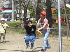 6年生は1年生の遊びたいことを聞き,ブランコや鬼ごっこなどをして,1年生とさらに交流を深めました。