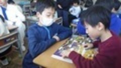 登校して来ると,朝の支度をします。朝の支度では6年生が来てくれて,お兄さん・お姉さんに手伝ってもらったり,「連絡帳はどこに置けばいいの?」と聞いたりして,初めてのことにもどんどん挑戦しています!