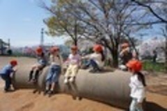 晴れた日には,グラウンドに出て鬼ごっこをしたり,遊具で遊んだりして過ごしています。グラウンドでの遊びをたくさん見つけて楽しそうに遊んでいます。