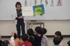 朝の会では「リズムとなかよし」で、リズムに乗って体を動かしたり,校歌を歌ったりして過ごしています。「先生となかよし」では,色々な先生が交代で自己紹介をしてくれます。「本となかよし」では,巨大絵本で読み聞かせをしています。