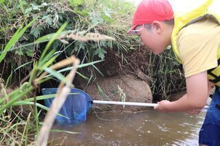 子供たちは,毎週青田川へ行き,バシャバシャと川の中に入り,生き物探しに夢中になっています。生き物がなかなか捕まらない日もありますが,粘り強くタモを動かし,時間いっぱい活動する様子が見られます。