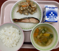 7月3日(水)は、「オクラとカボチャのみそ汁」でした。