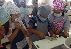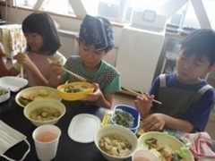 「おいしい!」「もっと食べたい!」と笑顔で食べました。「苦手だったけどおいしかった!」と、苦手を克服した姿も見られました。とれたての野菜がたくさんあり、出来上がったごはんは多くなったものの、完食しました。