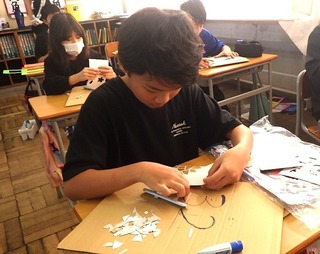 作品作りに一生懸命取り組んでいます。小学校生活最後の大手子どもまつり。