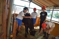 毎朝登校してすぐ,牛の「なな」との一日がスタートします。朝の身支度を済ませた子は,一目散にななの小屋にきて,汚れた糞を片付けたり,新しいエサをあげたりします。