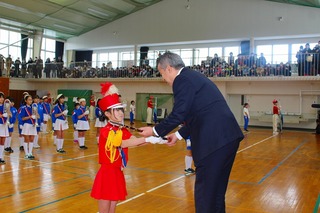 3月3日(月),ひまわりマーチングバンドからにじマーチングバンドへの移杖式を行いました。