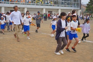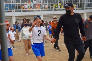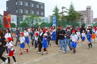 「親子でランランラン」。文字通り、親子で楽しくグラウンドを走ります。でも、しっかりチームの得点につながります。