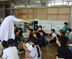 探究「青田川リサーチ 2025」では、青田川の生き物と水質を中心に探究しています。そこで、上越科学館の館長さんから来ていただき、川の水質を調べる方法とその分析の仕方についてのお話を聞きました。