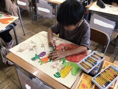 図工では、子どもまつりで展示する「おやさいとわたし」というテーマの絵の制作を行っています。