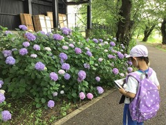 夏のわくわく探しに出かけました。6月24日(火)と7月8日(火)の2回高田城址公園の「わくわく」を探しました。「アジサイは、2種類あった。いろいろな色があったよ。」「ハスの葉が水に揺れて、シーソーみたいに動いていたよ。」「春は桜と高田城の景色がよかった。夏は、アジサイと高田城の組み合わせがすてきな景色だよ。」など様々な良さに気付きました。