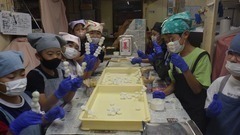 浅野さんは、串団子を刺す体験の機会を用意してくださいました。力の加減を調節して串を刺さないと,団子がつぶれてしまうことを体験し、団子作りの難しさを感じることができました。人と機械が作業を分担してお菓子を作っていること,お店の人がお客さんのためにたくさんの工夫をしながら働いていることについて学ぶ貴重な社会科見学を行うことができました。