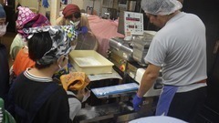 9月25日(木)に、社会科の学習で、栄喜堂さんに見学に行きました。お店の奥には工場があり、子供達はエプロン、マスク、手袋をして、工場の中に入りました。子供たちは、串団子の製造ラインを見学し、お餅を切る工程を人ではなく機械で行っており、同じ大きさに正確に切られていくお餅を見て機械の便利さに気付きました。