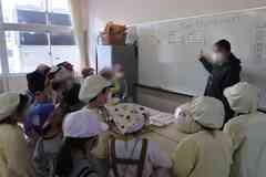 12月1日はお昼におうちで作ったお弁当を食べる「オリジナルべんとう」の日です。その日に向けて、栄養教諭からカラフル野菜を使ったふりかけやおにぎりの具材を紹介してもらい、調理実習をしました。