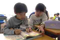 算数では2学期の復習をしています。グループを作り、分からないところを質問し合ったり、一緒に考えたりして学習を進めています。