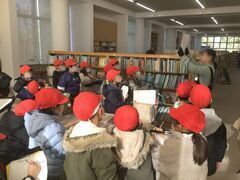 自作の絵本をどのように展示すればよいかのヒントを得るために、高田図書館へインタビューに出かけました。