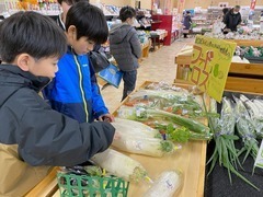 あるるん畑は農家さんの作った野菜や果物などの直売所であることを知ると,上越産の特産品を見比べながら,一人一人が買い物を楽しんでいました。