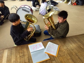 ひまわりマーチングバンドの集大成として,移杖式で全員が「100%の姿」となるよう,練習に取り組んでいます。