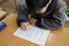 国語で、文章問題の解き方の練習をしました。普段の国語のテストでは、授業で何度も読んだ問題が出るため、文章をじっくりと読まなくても解くことができます。しかし、そうではない初めて読む文章を使っての文章問題には、苦手意識をもっている子供が多いです。