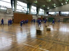 健康では、ボール蹴りゲームに取り組んでいます。本日(3/3)は、チームで協力して段ボールに向かってボールを蹴り、体育館の端から端まで移動させるゲームを行いました。